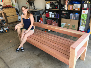 Last step was to add the slats for the bench. I went back and forth whether to use 1×4’s or 2×4’s. I went with the 2×4 just to keep the look consistent. You can see the final assembled bench.