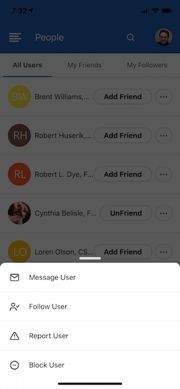- Finally, next to a post or if you go to the people page, you will see 3 dots in a circle. This is where you can voice your concerns about inappropriate behavior. We take this seriously, because CSINext should be a comfortable place to share your opinions without be disrespectful.